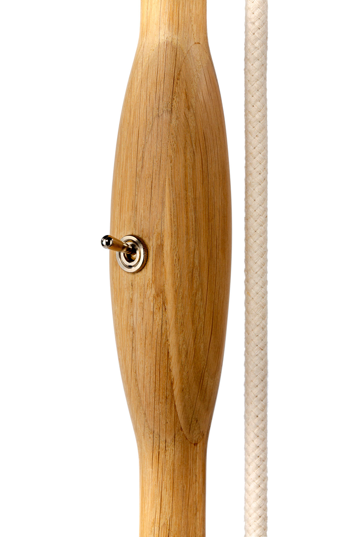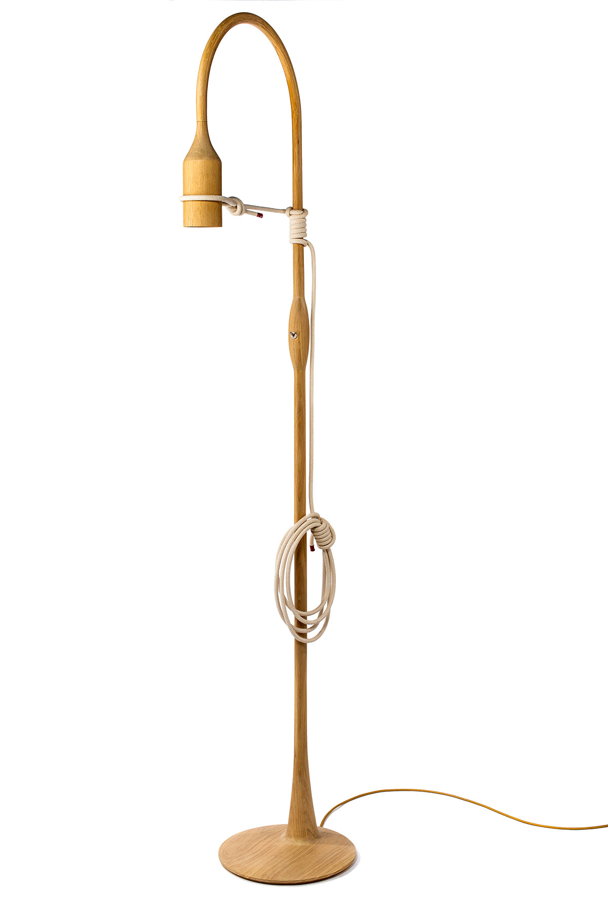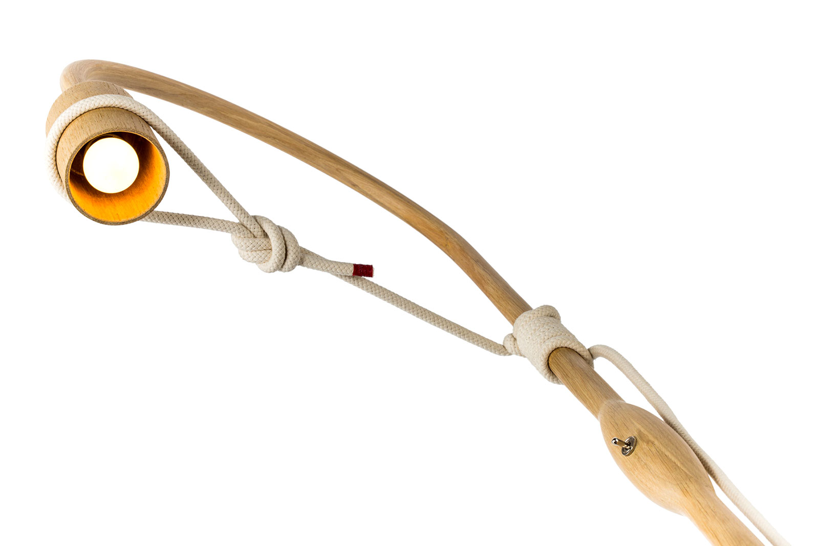 Chêne massif sculpté, tourné, cintré, cordage coton. Dim. 190×35 cm.